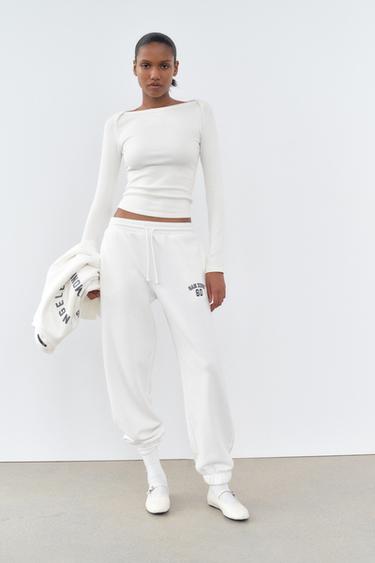 修身版型 - 一字领 - 常规衣长 - 长袖棉混纺 T 恤。一字领,长袖。